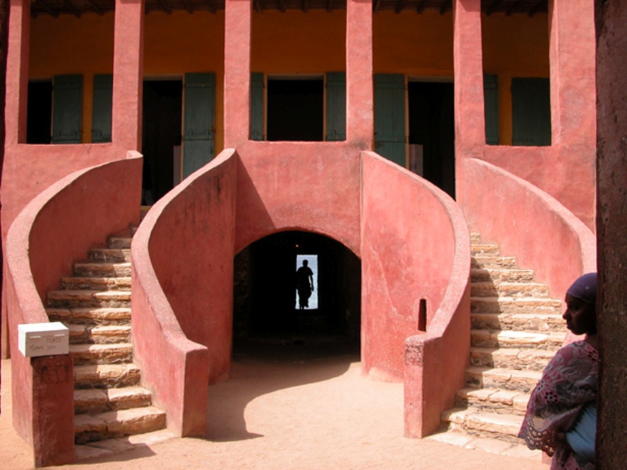 No es difícil imaginar el interés de los europeos por esta isla. Sus acantilados volcánicos la convierten en una fortaleza natural, un punto estratégico que por su forma y orientación geográfica proporciona protección y refugio a las naves. Desde aquí, cinco millones de africanos, arrancados de sus tierras, fueron deportados hacia América, el Caribe, la Guayana y Brasil como esclavos. La llamada “Maison des Esclaves”, la casa de los esclavos, con sus famosas escalinatas curvadas, anacrónicamente modernas, es testigo fiel de esta vergüenza de la historia europea. Visitarla, conscientes de lo que significa, es un verdadero acto de contrición. Alrededor de su patio central se distribuyen las diferentes habitaciones donde los condenados esperaban su deportación. El viaje era tan duro y la mortandad entre los esclavos tan grande, que antes de viajar los pesaban en una sala especialmente preparada para ello. Si el esclavo no daba un peso mínimo que supusiera una posibilidad razonable de llegar con vida al término de su viaje, se le retenía y se le cebaba durante semanas, a base de cereales y legumbres, hasta que alcanzara el peso adecuado. Aunque los expertos no parecen confirmarlo, algunos autores cuentan que desde la “puerta del viaje sin regreso”, situada tras la casa y frente al mar, los africanos cautivos veían la tierra en que nacieron por última vez en su vida, antes de embarcar en los pesados galeones donde permanecerían hacinados y encadenados durante cinco semanas. Algunos de ellos, los más bravos, intentaban aquí la última huida desesperada y caían bajo los disparos de sus captores. Para muchos la muerte era preferible al cautiverio.