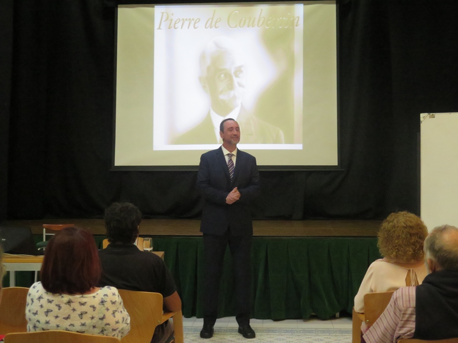 La figura de Pierre de Coubertin ha quedado ampliamente reivindicada por la semblanza realizada por Francisco Iglesias Buendía, Director de la Escuela del Deporte con Corazón, quien ha presentado a un personaje cargado de una fuerza inusual para plasmar su ideal educativo a través del deporte. Un hombre, que habiendo podido llevar una vida cómoda y desahogada, ya que había nacido en una familia noble y adinerada, dedicó su vida y toda su fortuna personal a la recuperación de los Juegos Olímpicos de la antigua Grecia. De Coubertin soñó con unos Juegos Olímpicos como medio para promover la paz entre los pueblos, a base de que los jóvenes conociesen a otros jóvenes de diferentes nacionalidades, y que a través de la práctica del deporte pudiesen desarrollar valores éticos y estéticos que consiguiesen elevar la estatura moral de las personas.  En ese sueño trabajó incansablemente durante toda su vida, hasta conseguir poner en marcha su ansiado proyecto en 1896.
