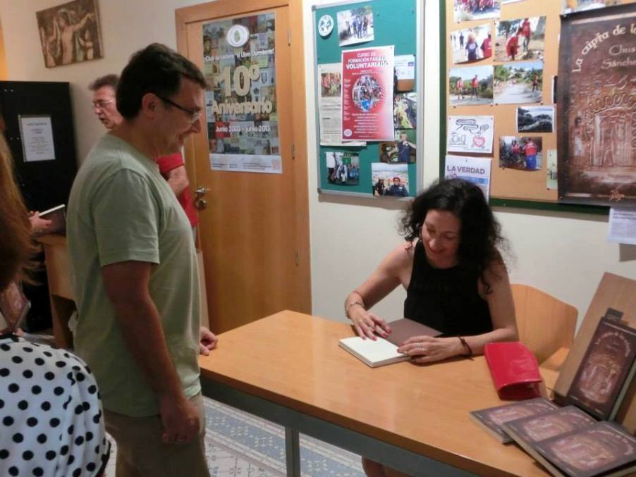 Hemos contado con su presencia en varias ocasiones en el Centro Imaginalia y en colaboración con El Libro Durmiente. La primera vez nos presentó su libro “La cripta de las estrellas” que sigue inspirando interesantes experiencias tres mil años más tarde. Con ella pudimos repasar los temas más importantes de su novela. Comenzamos preguntándole acerca del momento histórico elegido. Recordemos que la historia transcurre durante la campaña napoleónica, cuando arranca el siglo XIX en la que entran en acción las tropas francesas, los enfrentamientos con los ingleses, el apoyo de los mamelucos, las revueltas de los egipcios. Nos aclaró porque, en el inicio de su libro, agradece la ayuda recibida por parte de Luis Leante, Manuel Alcaraz y Mercedes Sierra. Sobre el resto de influencias, reconoció que se había inspirado en la fuerza que transmiten los personajes de Dostoiesvki. Por supuesto nos habló de KV17 La Tumba de las Estrellas perteneciente a Seti I. Fuente de inspiración para su novela y de nuestro encuentro con la autora. Nos aclaró dónde podemos visitar el sarcófago del faraón en Londres, mientras, algunos asistentes tomaban buena nota. Después de la presentación, la autora ha firmado y dedicado los ejemplares del público asistente. Por segunda vez nos visitó para presentarnos su nueva novela titulada “Nadie se conoce”. Marcos Rodes y Vicente Penalva han sido los presentadores de la autora y han mantenido con ella una conversación encaminada a desentrañar los entresijos que rodean al proceso de creación de la novela en cuestión. Chus Sánchez, periodista de profesión aunque actualmente dedicada a escribir ficción, premiada en numerosos certámenes y finalista en muchos más, como son los premios Terror de Utrera y Villa del Libro respectivamente, fue desvelando las motivaciones que la inspiraron para crear esta novela encuadrada en el género de terror o tal vez más cercana al género gótico según su autora. El título de la obra, “Nadie se conoce”, inspirado en el cuadro homónimo de Goya, surge de la reflexión de que, en realidad nadie se conoce con verdadera profundidad y ante circunstancias especialmente difíciles, como es el caso de los personajes de la novela, se manifiestan actitudes, comportamientos y reacciones insospechadas que hacen caer la máscara de la personalidad. La autora compartió reflexiones y recuerdos de su infancia que le han servido de inspiración, con los asistentes a la sesión del club de lectura quienes tuvieron ocasión de comentar algunos aspectos de la obra. La sesión se cerró con la tradicional firma de los ejemplares de la novela. Encantados de tenerla por tercera vez El Libro Durmiente desarrolló el encuentro literario en torno a la novela La historia que jamás deseé escribir, contando con la asistencia de Chus Sánchez. Tras glosar la trayectoria profesional y literaria de la autora, Chus se mostró gratamente sorprendida por el interés que ha despertado la novela, haciendo un breve resumen de las ferias, eventos y presentaciones a las que ha sido invitada. Que se haya realizado una segunda edición del libro confirma la buena aceptación que está teniendo entre sus lectores. Considerando que algunas de las personas asistentes no habían leído la novela, Chus inició la actividad exponiendo el argumento de una historia donde lo fantástico y el misterio se entrelazan con un contexto histórico, el cual conoció durante el proceso de documentación de su novela La cripta de las estrellas. La historia que jamás deseé escribir nos presenta a una protagonista (el género femenino de la misma lo contrapone Chus al rol que se les asignaba a las mujeres en la novela gótica) quien, por amor, persiste en su empeño por esquivar el destino trágico que sobreviene tras contraer la tuberculosis su marido. Tras varios viajes por España y Europa, la protagonista se embarcará en una aventura que la llevará hasta Egipto para adquirir la Mumia Vera, la panacea que, las clases acomodadas, demandaban en el s. XIX para vencer enfermedades como el cólera, la tuberculosis, la epilepsia… Al respecto, Chus trasladó que se tiene conocimiento de su comercio desde la época de los griegos, habiendo sido utilizada por reyes y aristócratas desde la edad media. A partir de la expedición napoleónica, se produjo en Europa el redescubrimiento y la fascinación por Egipto, trayendo consigo, entre otras cosas, una mayor demanda de esta sustancia. Acerca del título de la obra, la autora explicó que su protagonista se lamenta de haber plasmado una historia (fruto de un destino adverso que trunca la vida de una pareja que se proyectaba hacia un futuro feliz), la cual jamás hubiera deseado escribir. Con respecto a las ilustraciones de la portada e interiores, realizadas por Javier Sandá López, Chus manifestó su convencimiento de que su presencia aporta valor al relato, aclarando que las mismas surgieron de la lectura personal del ilustrador, adoptando la autora una actitud de aceptación y agrado por sus propuestas. Hubo ocasión de repasar sus anteriores obras (algunas de las cuales fueron presentadas en El Libro Durmiente) buscando conexiones entre ellas, como son, la época, la presencia de Egipto, la perspectiva de género… Finalmente, Chus Sánchez dedicó los libros a las personas asistentes, dejando una impronta en los mismos que los convierte en singulares. Enlaces Página oficial de Chus Sánchez Biografía y entrevista a Chus Sánchez en El Libro Durmiente Reseña del libro “Nadie se conoce” de Chus Sanchez realizada por Marcos Rodes en El Libro Durmiente |