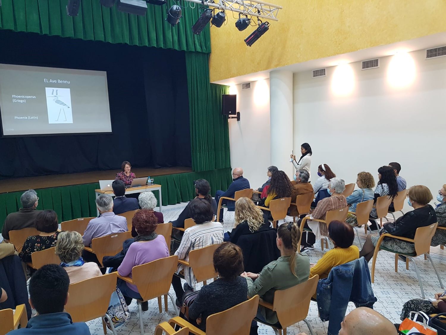A continuación, Lilia García ha profundizado en los conceptos de símbolo y mito para acercar al público el trasfondo que  encierra cualquier mito milenario. Explicaba que, los mitos como relatos simbólicos, son narraciones que nacieron de lo más profundo del alma humana para responder imaginativamente a sus más hondas cuestiones como: el misterio de la vida y la muerte, el amor, el universo, la tierra, quienes somos, de dónde venimos, la realidad, hacia donde nos dirigimos, entre otros. El ave Fénix se ha convertido en un símbolo de fuerza, de purificación, de inmortalidad, y del renacer físico y espiritual.
