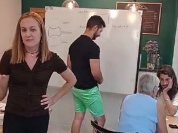 Hemos podido disfrutar de una mesa redonda en torno al sentido heroico de la vida. Lo primero que se preguntó fue qué se podía entender por héroe. A lo que casi todos respondieron con una serie de características como el no rendirse ante las dificultades, su actitud ante la adversidad, etc. Para ampliar esto un poco más, cada participante escogió una frase extraída del libro Camino hacia la victoria de la filósofa Delia Steinberg Guzmán que se leyeron y reflexionaron en voz alta. Tras esto, se pusieron algunos ejemplos de héroes y heroínas en los mitos y en la historia. Se habló también del camino del héroe, de las pruebas que podría encontrarse poniendo ejemplos cotidianos. También del guerrero que tiene que librar la mayor batalla en su interior, poniendo de ejemplo a Arjuna en el Bhagavad Gita. Finalmente, tras ponernos de acuerdo en una serie de virtudes que tendría que tener ese héroe, lo pusimos sobre papel con un dibujo (pero sin rostro). Elegimos cada uno tres virtudes a trabajar y le pusimos nuestro rostro, a modo de compromiso. Para ir trabajando en ese héroe que algún día llegaremos a ser.