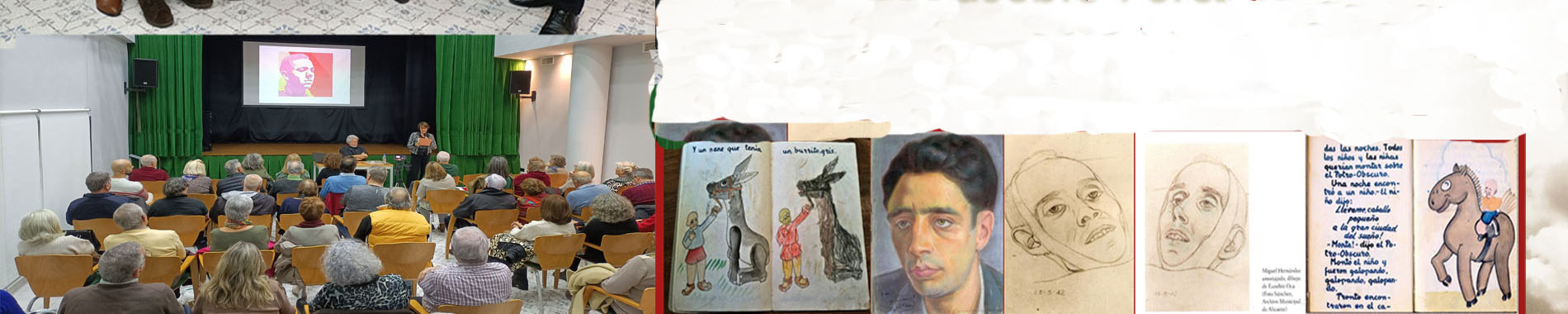 Sábado 20 de enero de 2024 a las 19:00 horas “Elegía a Miguel Hernández” Eusebio Pérez Oca presentó “Elegía a Miguel Hernández”, un trabajo de investigación acerca del final de vida del genial poeta oriolano, publicado en 2017 por la Concejalía de Memoria Histórica y Democrática Municipal – Archivo Histórico Provincial de Alicante. La magistral ponencia estuvo enmarcada por la declamación de dos poesías de Miguel Hernández: “Nanas de la cebolla” en el inicio y “Elegía a Miguel Sijé” al cierre. Eusebio aclaró que, cada imagen proyectada, así como las explicaciones contextualizadas de las mismas, se apoyan en una base documental recogida en su libro “Elegía a Miguel Hernández”. Acerca de las inexactitudes halladas en los escritos de Pérez Álvarez, las cuales hacen referencia a la presencia e intervención, en el final de Vida de Miguel Hernández, de otros presos, Eusebio demostró la imposibilidad de tal cosa al encontrarse los referidos, en dicho momento, excarcelados o en procesos de sanación convaleciendo en otros lugares. Al margen de los motivos por los que se ha fabulado sobre los citados hechos, la gran pregunta que se hace Eusebio y que, de forma extendida nos hicimos las personas asistentes a su exposición fue, ¿por qué Miguel Hernández no fue conducido al Hospital Judicial, como tantos otros presos, para ser atendido de la enfermedad de tuberculosis que padecía y le causó la muerte? El autor compartió algunos datos que claman en el tiempo como un acto de injusticia: a 1200 metros de dónde se encontraba Miguel Hernández se ubicaba el Hospital Judicial; al menos 200 presos fueron atendidos en dicho centro médico, teniendo referencia de ello porque sus procesos judiciales quedaron sin resolución al fallecer mientras recibían los pertinentes cuidados. Dar respuesta a esta cuestión es adentrarse en el ámbito de las especulaciones, las cuales, en la actualidad, no se han logrado determinar. Una posible explicación abundaría en la idea de que fue premeditado; que se prefirió un final de vida para Miguel Hernández en un lugar apartado, fuera de los focos que representaría un ajusticiamiento público, algo que conllevaría su conversión en mártir. Una vez finalizada la disertación se abrió el turno de preguntas destacándose de ellas la que hacía referencia a la leyenda que presentaba a Miguel Hernández como un cabrero iletrado, siendo que la dicha imagen no se correspondía con la realidad de un poeta ilustrado y genial. En esta línea se recordó la buena relación que mantuvo con Federico García Lorca quien pensó en Miguel Hernández como el continuador natural de La Barraca. Por último, se puso en valor la traslación al ámbito musical de las poesías del inmortal oriolano por parte artistas de la talla de Paco Ibáñez y Joan Manuel Serrat.