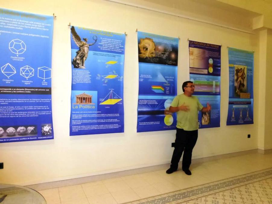 Sábado 14 de octubre de 2013 a las 20:00 horas Exposición Didáctica “Platón, Ciencia, Filosofía y Mito” En la sala de exposiciones que el Centro de Imaginalia dispone, se ha ofrecido una exhibición didáctica filosófica bajo el nombre; “Platón: Ciencia, Filosofía y Mito” Esta actividad se ha realizado dentro del homenaje llamado el Ciclo Platónico; que el Centro Imaginalia junto con la colaboración de la Asociación Nueva Acrópolis, está realizando durante este año por el aniversario de los 2400 años de la fundación de la Academia de Platón. La exposición con distintas láminas de composición esquemática, nos hacen comprender de una manera clara y concisa, todo el propósito que Platón nos ha dejado en su legado. Temas como: “La Naturaleza del hombre”, “La Atlántida”, “La educación”, ”Los Arquetipos”, “El Mundo de las Ideas”… De esta grata forma se ha podido visualmente entender el pensamiento platónico. Durante la inauguración se ha presentado el documental, “La República de Platón” y se ha invitado al público asistente a un cóctel. |
