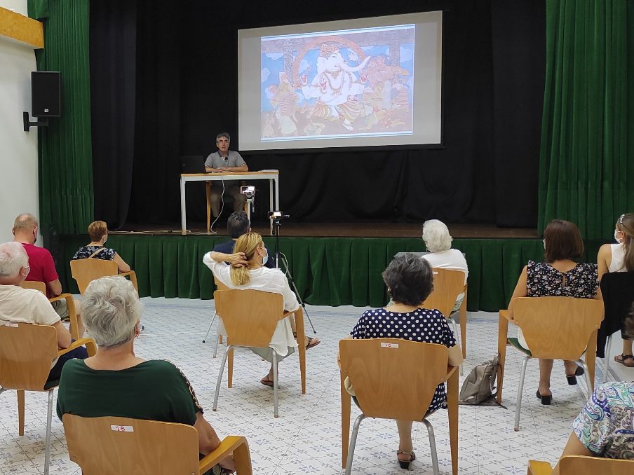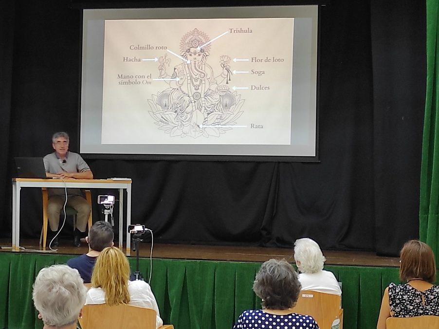 Jueves 24 de junio de 2021 a las 20:00 horas Charla “Ganesha, el dios compasivo de la sabiduría” Ponente: Vicente Penalva En el marco del ciclo de charlas que la Organización Internacional de Filosofía, Cultura y Voluntariado, NUEVA ACRÓPOLIS, se encuentra desarrollando, el profesor de historia e instructor de filosofía D. Vicente Penalva, ha presentado en la sede de Nueva Acrópolis en Alicante, la disertación sobre Ganesha, el dios compasivo de la sabiduría. Ganesha es un dios venerado por diversas religiones y sectas en la India principalmente pertenecientes al hinduismo. La sabiduría, en el contexto de la filosofía y mística de la India, es el conocimiento espiritual, el conocimiento de la naturaleza del espíritu del ser humano y del universo. El dios Ganesha, con sus varios atributos se representa por medio de una imagen de hombre con un corpulento cuerpo de prominente abdomen que tiene cabeza de elefante. A Ganesha se le considera patrón de las artes, las ciencias y de la liberación del alma humana del ciclo del samsara. Las imágenes como la de Ganesha han sido utilizadas desde tiempos remotos como guía de meditación para provocar la accesis mística. En la actualidad la veneración a Ganesha se profesa no solo dentro de los templos sino también en el ámbito privado, reconociéndosele la capacidad de allanar los obstáculos de la vida a sus fieles seguidores, según explicaba el disertante.