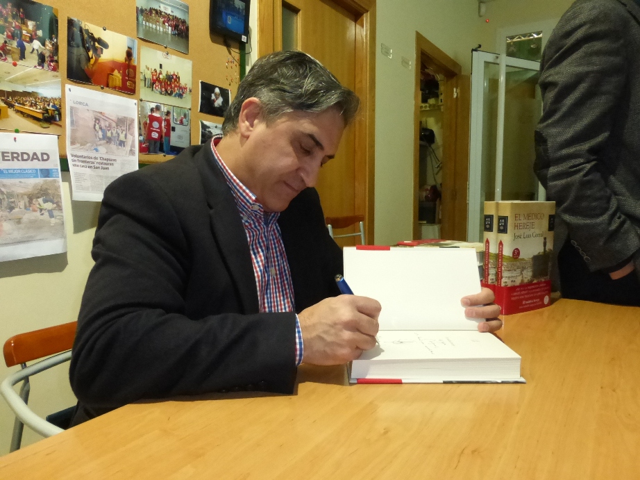Dentro del ciclo “El número de Oro” organizado por el Centro Imaginalia y con la participación de El Libro Durmiente, contamos con la presencia de José Luis Corral. Su tema de su exposición fue sobre Las catedrales góticas en las novelas, en el que hizo un recorrido por los títulos y autores de mayor importancia. Esta conferencia tuvo un especial interés para los integrantes del taller de escritura, quienes aprovecharon para completar conocimientos sobre un género singular dentro de la creación literaria. En la introducción de su charla aprovechó para reflexionar acerca de la novela histórica, término al que definió como el oxímoron perfecto. Nos alertó de que, con demasiada frecuencia, la historia ha sido utilizada como un arma ideológica. En la segunda parte la actividad, José Luis realizó una sinopsis sobre su última novela El médico hereje. En la misma destacó la condición racionalista de Miguel Servet, frente al dogmatismo de los católicos y reformadores, al que consideró como un adelantado a su tiempo. No dudó en afirmar que, en cierto sentido, somos más libres gracias al médico aragonés. Tras su exposición, Corral dedicó la novela a sus lectores. Tras semejante despliegue de erudición, nos despedimos de Corral con una expresión que entendemos acertada: “ha sido un lujo contar con tu presencia”. Enlaces Biografía de José Luís Corral en El Libro Durmiente